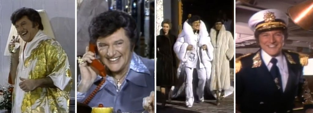 A kitschy celebration of all things Valentine’s, the special was particularly notable for its setting aboard the Queen Mary – a now-historic British ocean liner which Liberace loved and had traveled on during his first trip to London in 1956. “Planes weren’t quite as spacious then as they became with the 747s and I had a lot to take over with me,” he explained in his autobiography. “[But] I had a secondary reason for wanting to cross by boat. I felt that because of the rising popularity of trans-oceanic air travel, the great liners, that took so much longer, were on their way to the dry docks or into the cruise trade. I wanted to ride on one while it was still everything it was built to be. And I sure got what I wanted; I had a ball all the way from New York Harbor to Southampton.”