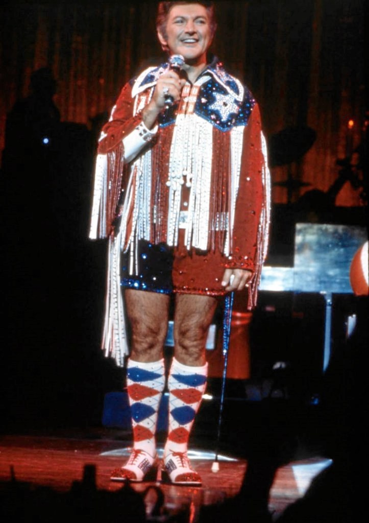 Happy 4th of July to one of Liberace’s most iconic and well-known costumes – his bedazzled red, white, and blue hot pants!