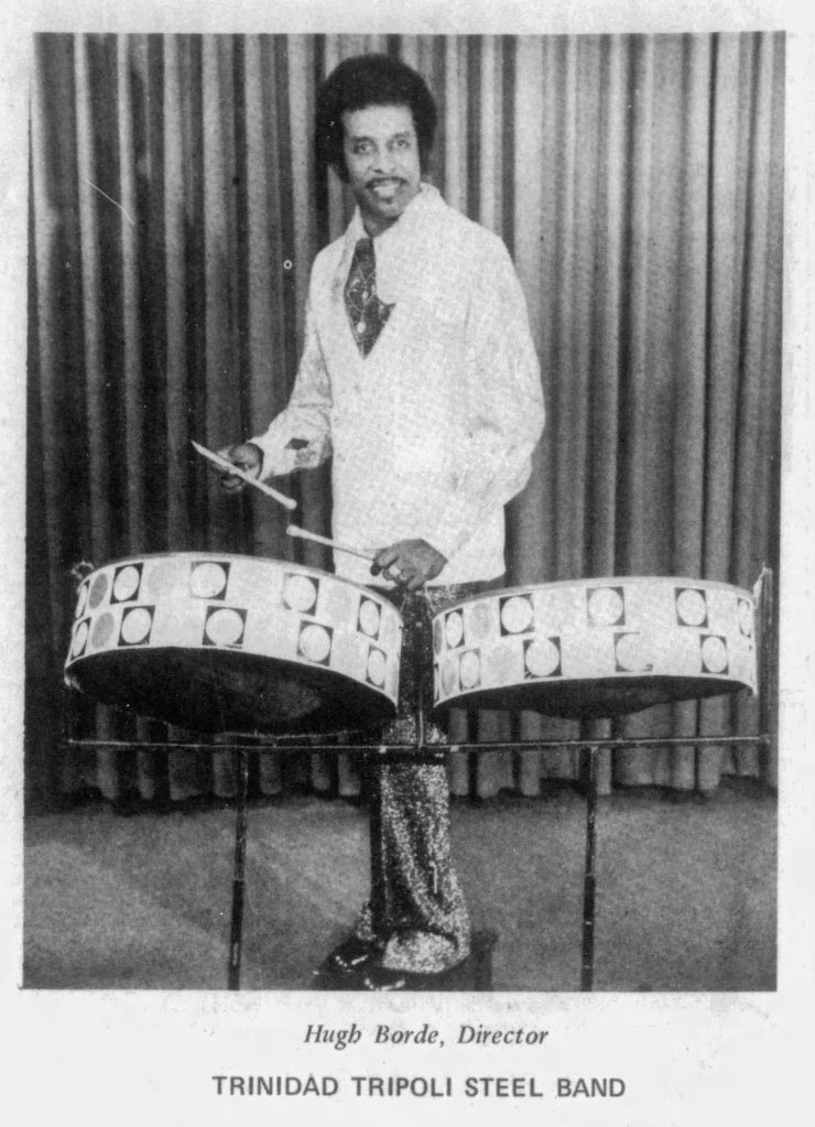 After parting ways with Liberace in 1970, Hugh Borde continued to perform with the Trinidad Tripoli Steel Band at state fairs, colleges, and cultural events across the US.15 A proud Trinidadian whose contributions to steel drum music remain historic to this day, Borde would also serve as a judge in Trinidad’s annual steel drum competition, Panorama, as well as receive a Grammy nomination for his work with the Trinidad Tripoli Steel Band in 1972.16